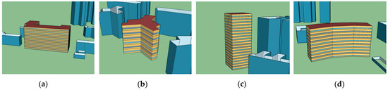 In this paper, spatial analysis was performed by AutoBPS. Shading between buildings affects the final energy consumption of a building. Many buildings are in the selected area, but only a few could affect the target building. Identifying the buildings that can shade it, rather than all the buildings in the area, will make the simulation easier. Three times the height of the surrounding buildings is considered as the judgment distance. When the distance between the target building and surrounding buildings is less than the judgment distance, it is considered that the surrounding buildings may shade the target building. This distance means that, more than 90% of the time, from 8:00 to 18:00, the target building will be shaded. Shading consideration is shown in Figure 3.