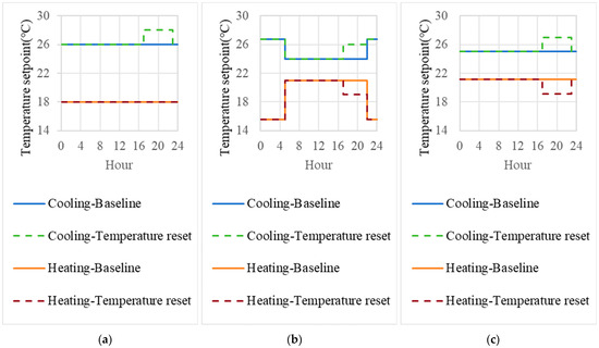 Temperature setpoint: (a) residential buildings, (b) office, (c) hotel.