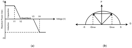 PV smart inverter curve: (a) Volt/Var curve; (b) power capability curve.