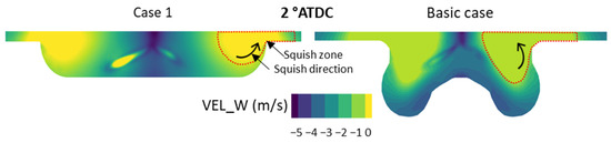 Figure 10 shows the final Pareto front summarizing all non-dominated cases according to this optimization, where the two limiting cases of this front are indicated as follows: Case 1, for which the optimizer focuses on maximizing indicated thermal efficiency and combustion efficiency. Case 2, for which the optimizer focuses on minimizing NOx emissions.