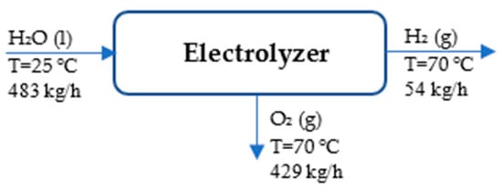 According to the references, H2 (g) and O2 (g) are assumed to be at 25 °C and 1 atm []. Table 1 presents the streams of mass and energy in the electrolyzer unit.