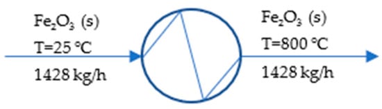 The energy values of the iron ore (hematite) preheater are found from the following equations []: