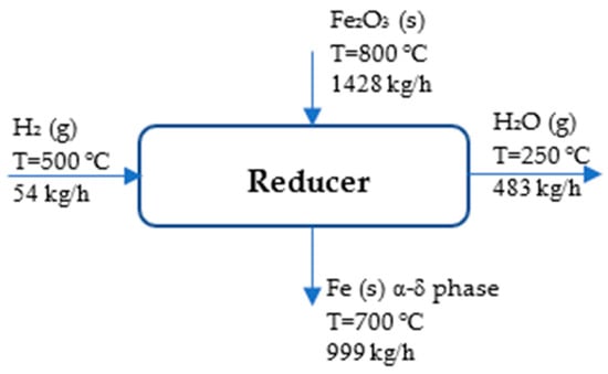 where Fe2O3, H2, Fe, H2O, and O2 represent iron ore, hydrogen, sponge iron, water, and oxygen, respectively.
