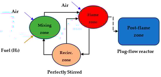 In the model, the following reaction equation for the combustion of hydrogen was used []:
