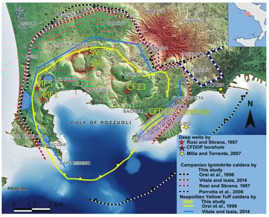 Campi Flegrei Deep Drilling Project (CFDDP) map [31,40,41,42,43,44,45,46].