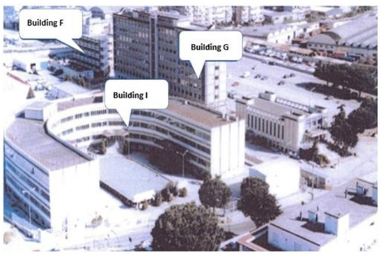The three office buildings (buildings F, G, I) are equipped with a range of 3–8 floors with a total area of about 27,000 m2. The office buildings are characterised by 124 thermal zones (50 for building G, 34 for building I, and 40 for building F) including unconditioned zones, such as flights of stairs and elevators. The height of each floor is equal to 2.8 m for the basement floor and 3 m for other floors in building G; equal to 2.3 m for the basement floor and 3 m for other floors in building I; and equal throughout to 3 m in building F.