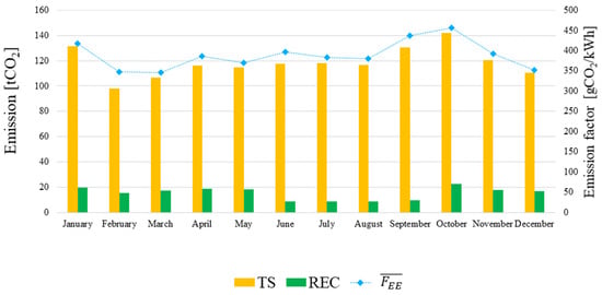 where is the total demand for electricity from buildings, FEE is the electricity emission factor linked to the national grid, and represents the amount of electricity purchased from the grid in case the system is not able to provide it. In order to obtain a dynamic analysis on an hourly basis for environmental analysis, the hourly emission factors for electricity grid emissions have been considered for Italy using the analysed data of a previous study [38]. The electricity emission has been evaluated in REC only for the share of electric energy taken from national power grid, while for the condition under which all electric load is satisfied by the geothermal plant, FEE is assumed equal to zero.