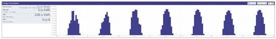 Although the aim of this paper is to monitor the loads (home appliances), the openZmeter device is capable of gathering real-time data on other parts of the microgrid. For example, Figure 3 shows the energy generated by the photovoltaic system within one week, where it can be observed that solar intensity varies periodically, as indicated by the recurring patterns.