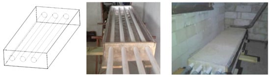 To conduct the experiment, a model of an underfloor heating system was employed, consisting of 50 mm diameter channels made from thin PVC pipes. The concrete layer in which the channels were placed could be constructed as a prefabricated element or customized for specific orders.