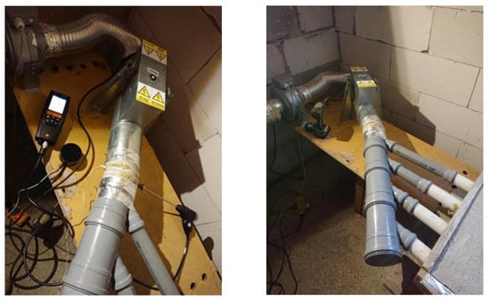 At the beginning of the measurements, the airflow parameters were determined, with a velocity of vp = 2.81 m/s, and the diameter of the main duct was d = 110 mm. The measurements helped determine the airflow and the energy delivered to the air through the electric heater.