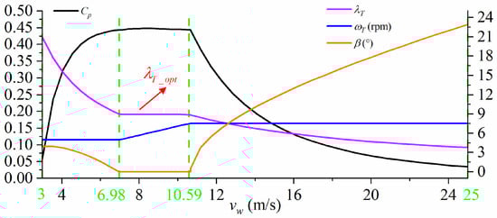 where coefficients can be determined through curve fitting of turbine operational data. For , achieves its maximum value at the optimal TSR (), allowing the wind turbine to maximize energy extraction: