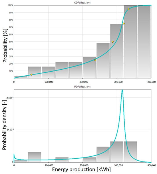 Data on the monthly amount of energy produced were exported in digital form and processed using specialized GeNIe 4.1 Academic software. First, the authors made calculations for the month with the highest monthly energy production, i.e., May 2023 (Figure 4).