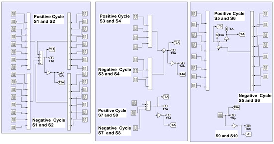 A detailed Simulink model of the switching controls is shown in Figure 6. The gating signals for phases B and C are derived from Phase A, by adding phase shifts of and , respectively.