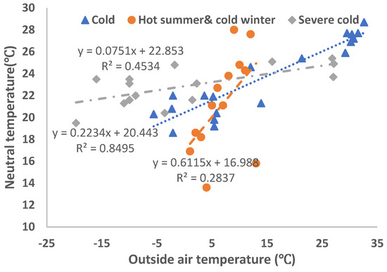 - In the same climate region, the neutral temperature in the summer is greater than the neutral temperature in the winter, especially in hot summer and cold winter regions and hot summer and warm winter regions.