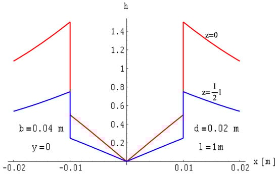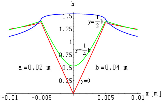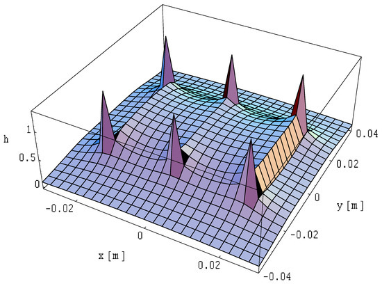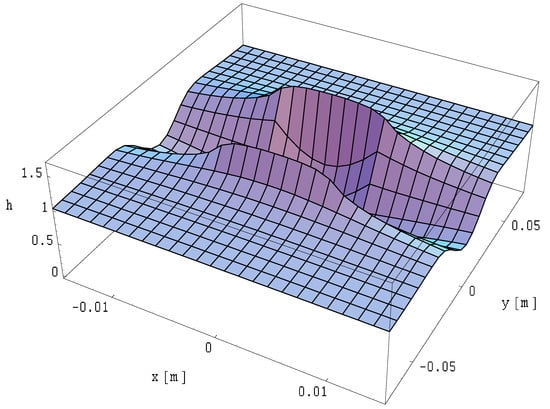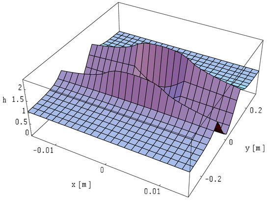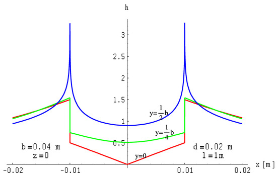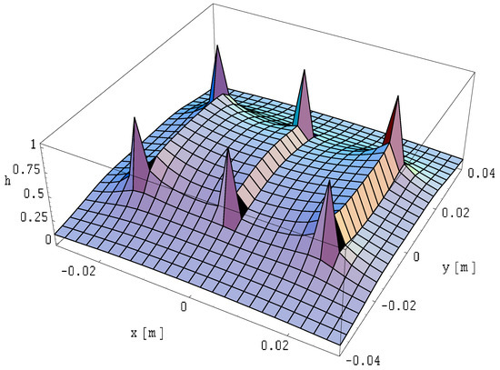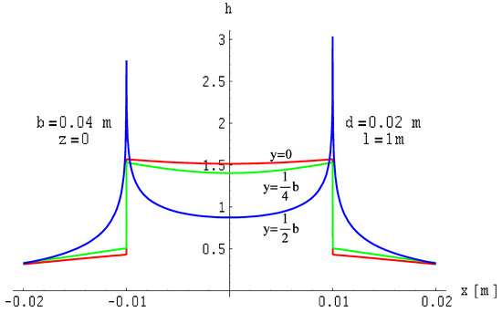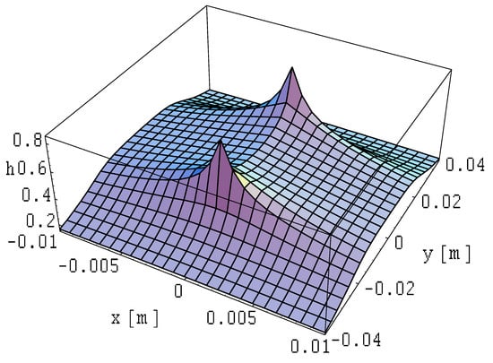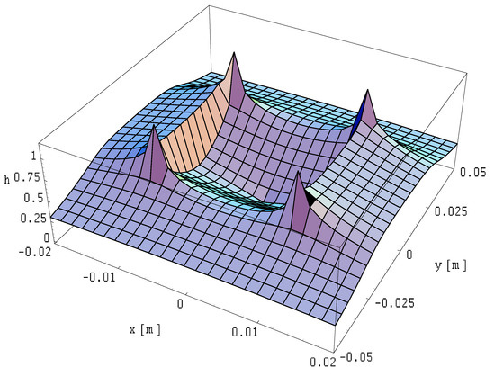 The field distributions for this case are illustrated in Figure 25, Figure 26 and Figure 27. The field is expressed in relative units as a function provided by Formula (14), where the reference of the magnetic field is expressed in Formula (31).