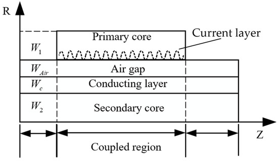 Through a series of reasonable assumptions, the 2D electromagnetic analysis model of CLIM is established in the cylindrical coordinate system, as shown in Figure 5. According to the principle of equality of traveling-wave potential, the current layer is used instead of the actual winding current: