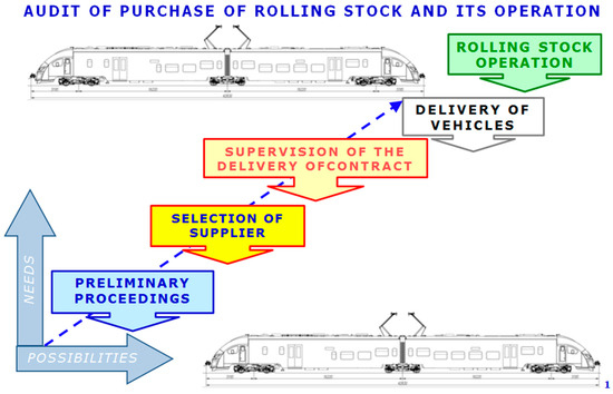 Therefore, before the purchase of railway vehicles by the rail operator, it is necessary to develop—in analogy to infrastructural projects—a methodology of supervision of safety levels during each phase of the purchase and operation of a railway vehicle (Figure 1), i.e., the following [13,14,15]: