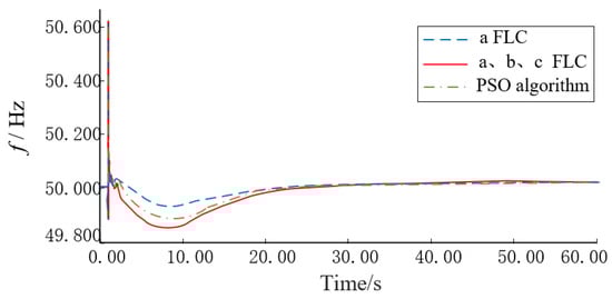 Furthermore, a comparison was carried out between the simulation results obtained using the PSO algorithm and the method described in this paper. The comparison was performed for the scenario in which all three DC projects (DC projects a, b, and c) simultaneously engage FLC. It was noted that the maximum frequency deviation during the recovery process with the PSO algorithm was approximately 0.5 Hz. In comparison to the PSO algorithm, the method proposed in this paper aims to achieve a smoother process for recovering system frequency, with smaller fluctuation amplitudes. Meanwhile, according to the literature [