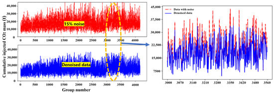 In the experiment, we utilized WT technology to filter the analog datasets with four different noise levels. Taking the example of cumulative injected CO2 data with 15% noise, the comparison before and after filtering is depicted in Figure 5.
