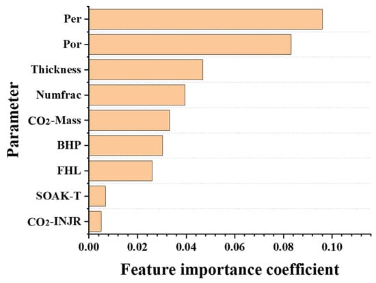 The dataset used in this section is derived from the reservoir numerical simulation model constructed in Section 2.1.2. It consists of a total of 4090 groups of data. Each group of models calculates the ORF for the corresponding model. The dataset includes the ORF and nine parameters mentioned in the previous section, namely Por, Per, Thickness, FHL, BHP, CO2-MASS, CO2-INJR, SOAK-T, and Numfrac, forming a set of data for each model.