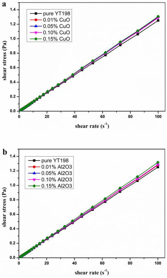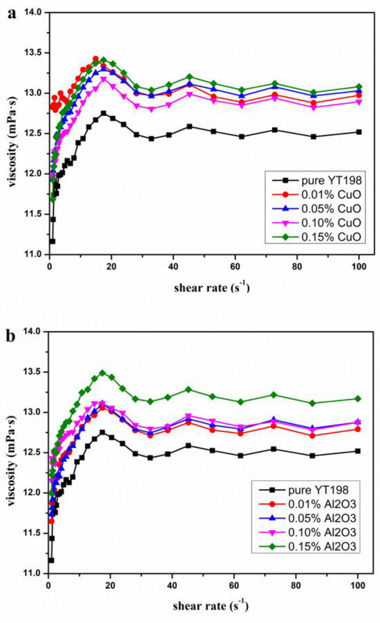- Sun, L.; Zhao, Q.; Zhang, Y.; Gao, W.; Jing, D. Insights into the rheological behavior of ethanol-based metal oxide nanofluids. J. Mol. Liq. 2021, 323, 115006. [Google Scholar] [CrossRef]