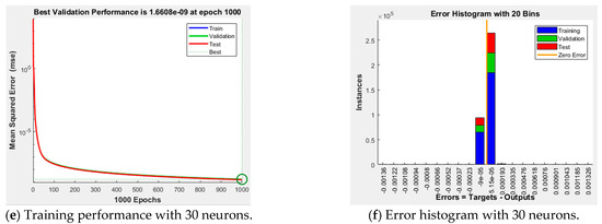 The reason for using nonlinear activation functions is to solve the problems of the model more effectively. When using linear functions, the presence of hidden layers may result in unnecessary outcomes because the relationship between the inputs and outputs is merely represented by addition and multiplication. Therefore, the activation functions must be non-linear. However, for the output function, it is necessary to reflect data passing through the hidden layers of the output. However, the application of a non-linear function to an output function may lead to data loss. In this study, we applied a sigmoid function as the activation function, which is reflected in the simulation results presented in the following section [28]. The MATLAB R2020b toolbox used to train the ANN applied in the paper was validated through three steps.