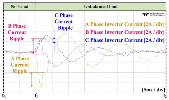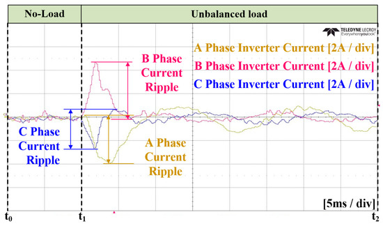 Experimental waveforms of the three-phase inverter current in Case 2.