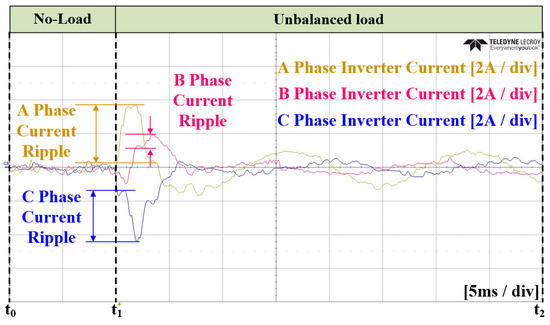 Experimental waveforms of the three-phase inverter current in Case 3.