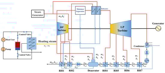 In this case, the main steam flow rate is set to be constant, and the vapor equation is used for the analysis and modeling of the system. The regenerative heat system of the reference nuclear unit consists of 7-stage regenerative heaters (RHs).