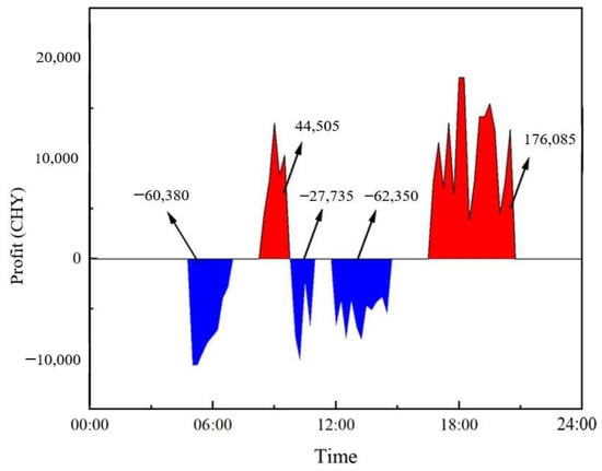 It can be seen that the integration of the TST improves the profit of the nuclear unit. As shown in Figure 10, the profit of the reference nuclear unit could be improved by CHY 70,125 in the reference day, according to participation in the load adjustment outlined in the case above.