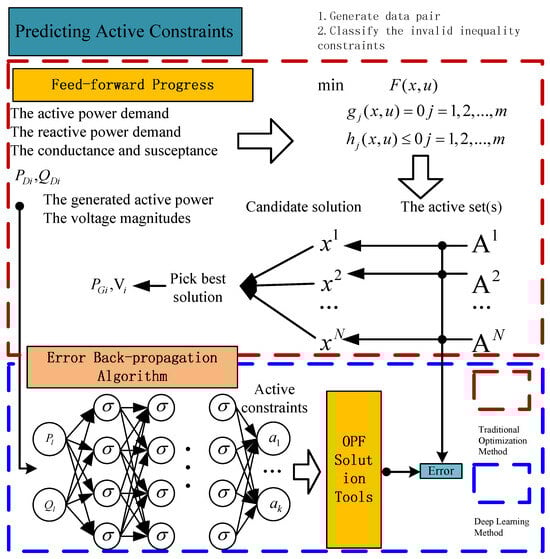 - Liu, S.; Guo, Y.; Tang, W.; Sun, H.; Huang, W. Predicting Active Constraints Set in Security-Constrained Optimal Power Flow via Deep Neural Network. In Proceedings of the 2021 IEEE Power & Energy Society General Meeting (PESGM), Washington, DC, USA, 16–29 July 2021; pp. 1–5. [Google Scholar] [CrossRef]