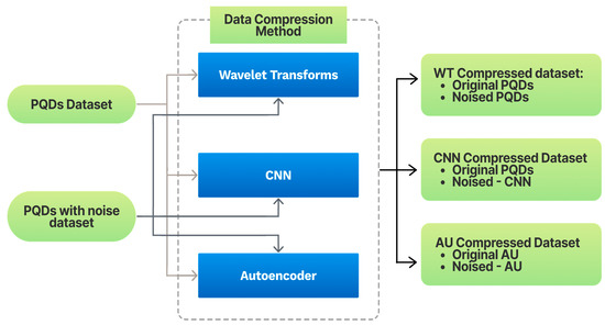 - To examine the most efficient compression approach for PQD datasets. Since a high compression ratio for any technique does not guarantee the optimum solution for all data kinds, several compression methods and algorithms are available for each data format. Many variables affect which compression technique is suited for each data type. Hence, the data compression algorithm selected will impact the categorization model’s performance. Therefore, it is critical to determine the best dataset compression method utilized as a benchmark to achieve high accuracy in the classification process.