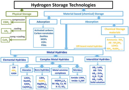 - Zhang, F.; Zhao, P.; Niu, M.; Maddy, J. The Survey of Key Technologies in Hydrogen Energy Storage. Int. J. Hydrogen Energy 2016, 41, 14535–14552. [Google Scholar] [CrossRef]