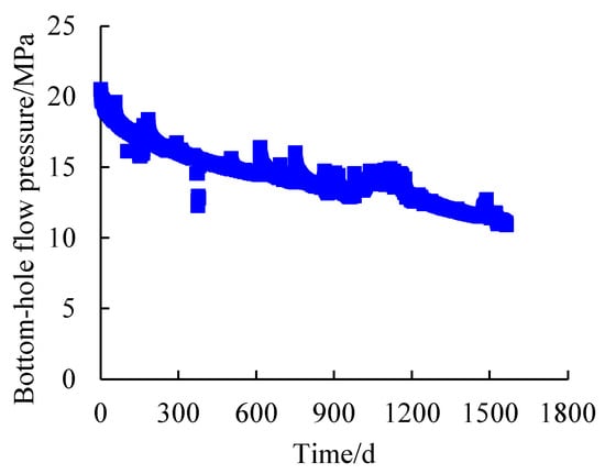 The variation curve of bottom-hole flow pressure with time in the actual production process of well SX-1.
