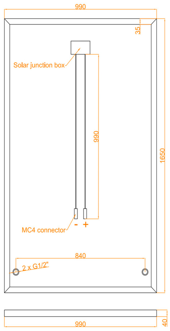 The primary part of the proposed system is the hybrid panel SUNSYSTEM PVT 240, as depicted in Figure 3 and the main dimensions in Figure 4.
