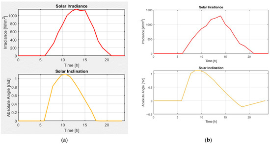 Notice the remarkably close values obtained by applying the two models, with the difference being extremely small, below 5%. It is important to highlight that the simulation conducted in Simulink did not include the inverter and cable losses. When considering the efficiency of the inverter, ηel,model2 = 0.1230. In the realization of model 2, the thermal inertia of the system was not considered and for this reason the difference between the calculated values of the thermal efficiency appears.