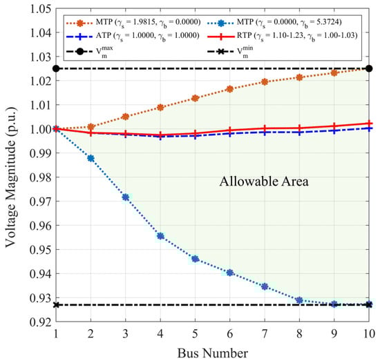Figure 11. Voltage magnitude comparison between the ATP, MTP, and RTP.