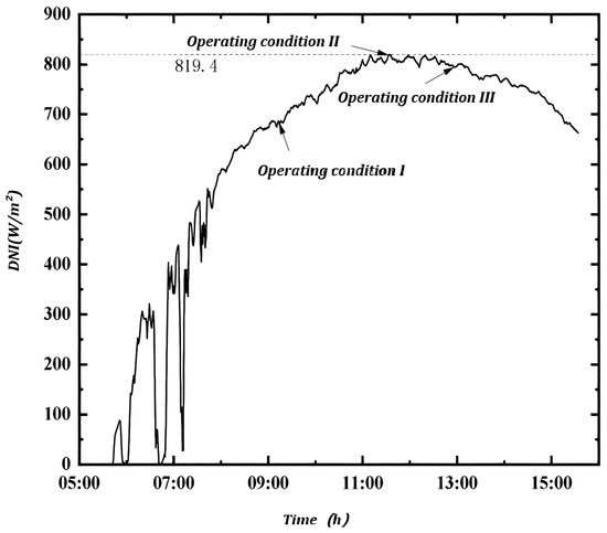 where D N I is the direct normal irradiance, W/m2; A 0 is the total receiving area of the heliostat field, m2. η o p t is the optical efficiency of the heliostat field.