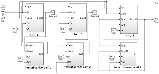 The dynamic process mainly occurs in the heat transfer part, and its main principle is similar to the model of the heat reclaimer in STIGT, which utilizes the distribution parameter method to calculate the temperature distribution of the internal solar absorber heated wall surface and the air, which will be discretized along the direction of the air flow into N volumetric units, and each unit transfers heat to the air by the heated wall surface of the solar absorber.