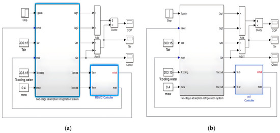 Figure 22. Simulink control model of the novel system: (a) MDMC; (b) PID control.