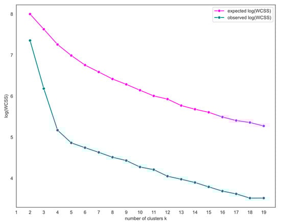 Expected log(WCSS) and observed log(WCSS).