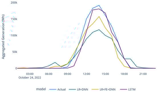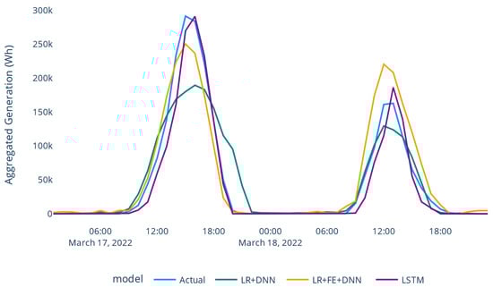 The first model, LR+DNN, is represented in Figure 8 and can extend up to 168 hours. The input for the DNN was the solar generation from LR model.