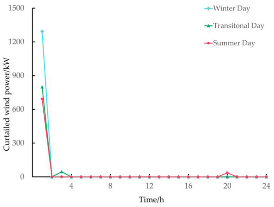 - Compared with the standard PSO algorithm, the EDIW-CPSO algorithm not only saves on the scheduling cost, but it also reduces the comprehensive cost and wind curtailment rate in winter. Therefore, the EDIW-CPSO algorithm can obtain better optimal scheduling results, and the corresponding planning scheme is also better.
