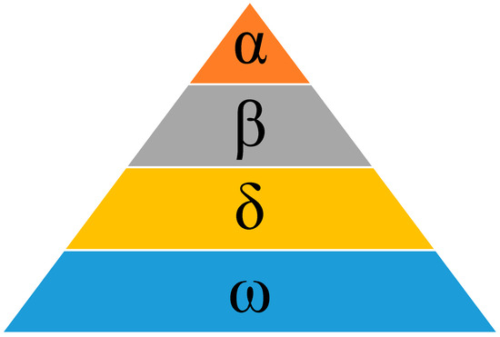 The gray wolf optimization algorithm (GWO) is inspired by the social leadership and hunting behavior of gray wolves in nature. Compared with other metaheuristic algorithms, the GWO algorithm has the advantages of a simple structure, having few control parameters, being easy to improve, and having the ability to achieve a balance between local and global search. The GWO algorithm takes the three leading wolves α, β, and δ with the best adaptation in the population as the best solution and guides the remaining ω wolves in the direction closest to the prey so as to find the global optimal solution. Wolf hunting consists of three main steps: surrounding, hunting, and attacking prey. The number distribution of the social ranks of wolves is shown in Figure 1.