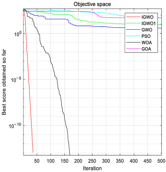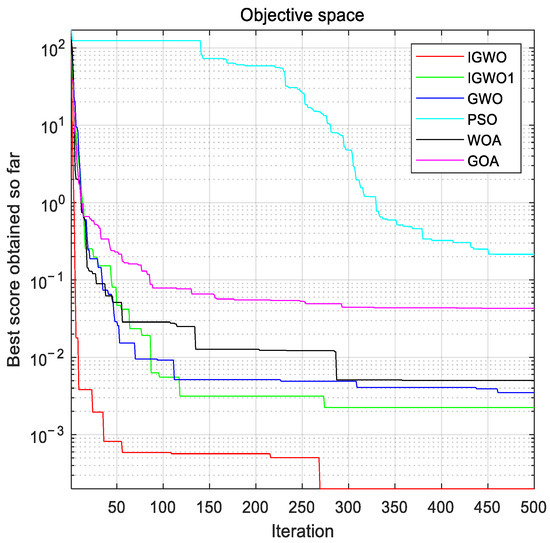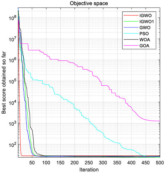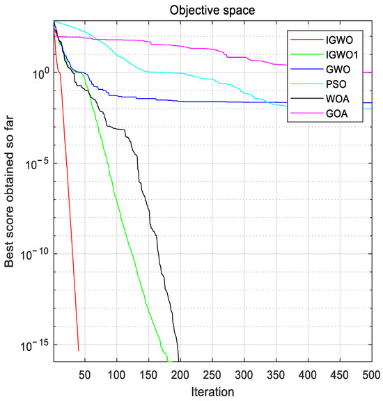 In summary, the IGWO has excellent performance in testing benchmark problems, especially compared with the original gray wolf algorithm; its exploration and exploitation capability has been greatly enhanced, which avoids the algorithm falling into local optimal solutions to a certain extent, but it needs to be strengthened in solving multimodal benchmark problems.