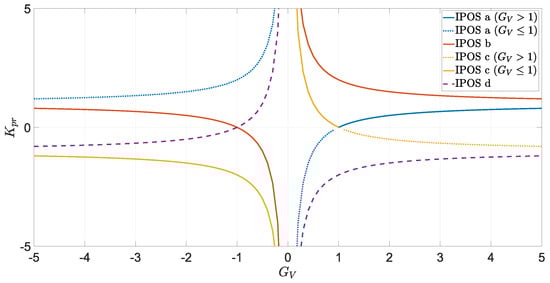 The above equations can be further visualized in Figure 5. Referring back to the IPOS (a) formula in Table 1, it can be seen that will always be bigger than ; hence, is always ≥1, and this achieves overall step-up operation, and IPOS (a) cannot operate in scenarios where is set lower than . IPOS (b), on the other hand, can work throughout the entire range of , which can be translated as having negative (i.e., swapped). However, negative values appear when operating . This can be interpreted as having power flowing in the reverse direction through the converter. Another feature that can be concluded about IPOS (b) is that the majority of power will be processed by the converter, and the converter will never process less than of the total input power.