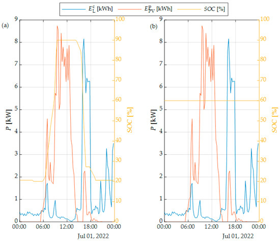 Strategy 1 (a) and strategy 2 (b) for an active user with a PV plant and BESS.