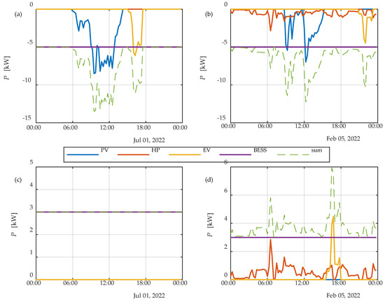 Positive and negative flexibility potential for a PV (a,b) and a BESS (c,d).