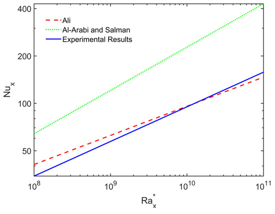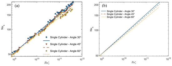 Therefore, the dimensionless Nusselt and modified Rayleigh numbers can be calculated using Equation (9), where the local distance x along the cylinder axis is used as a characteristic length.