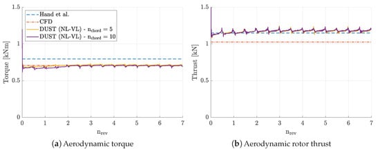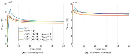 Comparison of integral rotor power and thrust computed by DUST and high-fidelity CFD by Dose et al. [26]; .